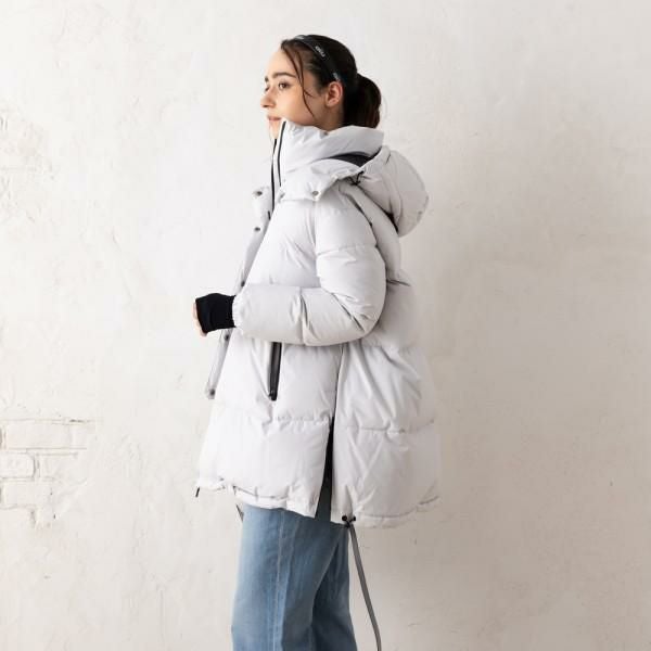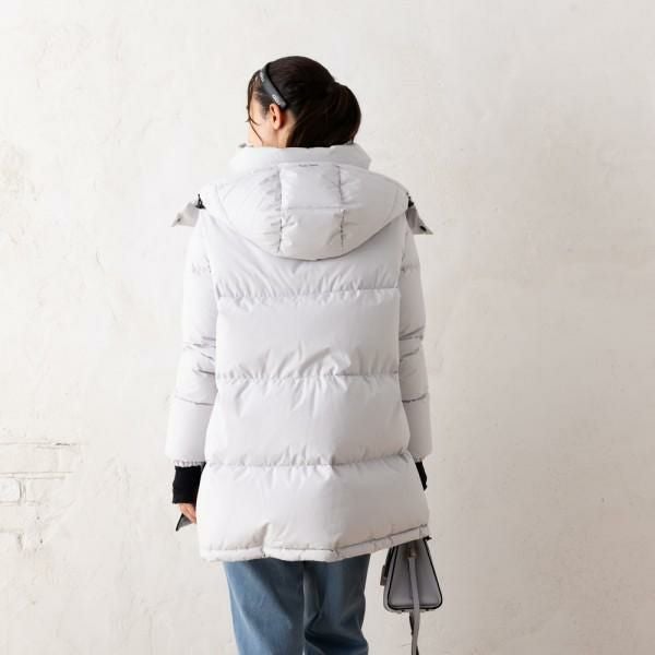 クリーンなカラーにAラインシルエットが女性らしいダウンジャケット。袖口はインナーカフ仕様で、防寒性を高めます。サイドファスナーでシルエットの変化を楽しめるのもポイント。デイリーコーデにさっと羽織るだけで、こなれ感を演出できます。