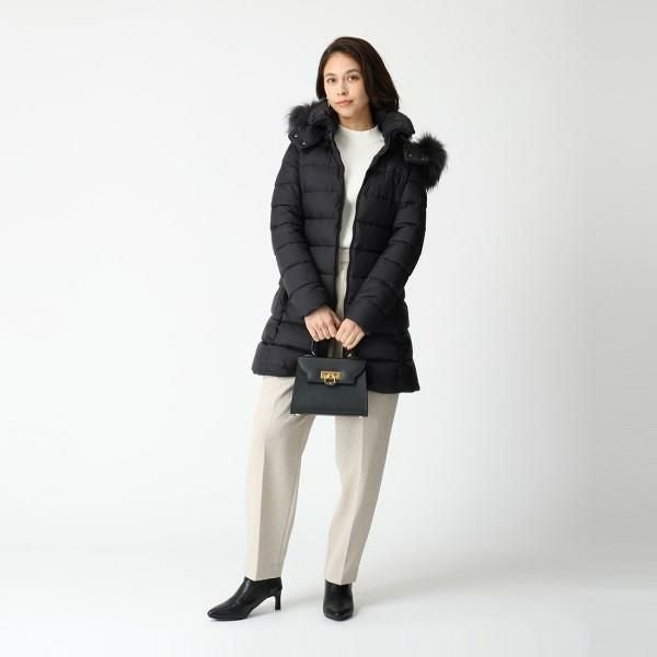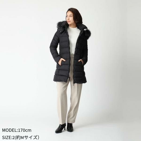 ボリューミーなファーをフードにあしらい、シーズンムードを盛り上げる存在感のあるデザインになりました。ボディはウエスト部分にくびれを持たせたすっきりとしたシルエットで、身体のラインがきれいに見えるのが魅力的。大人らしいファッションにもマッチしてくれるので、上品に決めたいお出かけの日にもいかがでしょうか。