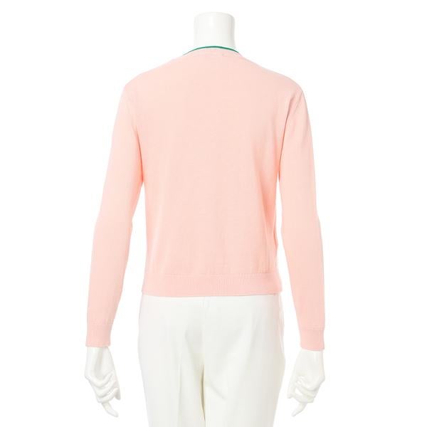 ネックラインとロゴ刺しゅうの配色がアクセントになるカーディガン。コンパクトなクルーネックデザインで、スタイリングに上品な印象を与えます。どんなボトムスにも合わせやすく、コーディネートの幅が広がるアイテムです。
