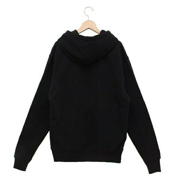 胸元にあしらわれたブランドロゴがアクセントになり、印象に残るデザイン。ゆったりとしたシルエットでこなれ感を出しつつ、動きやすさも確保しました。大きめのポケットやフード付きで実用性が高く、休日のお出かけにぴったりです。
