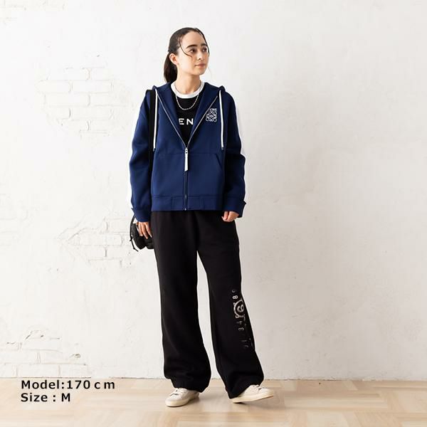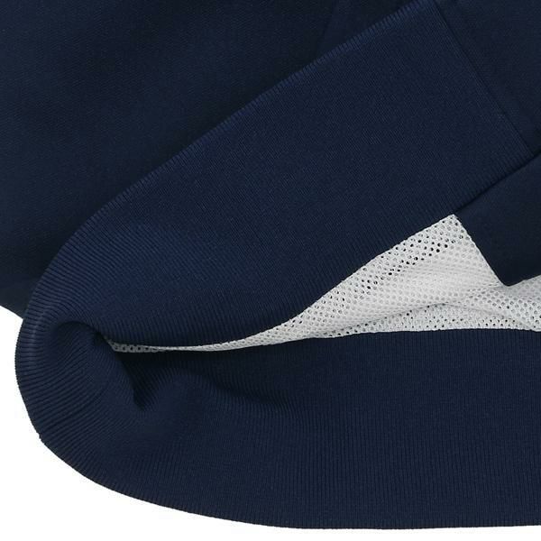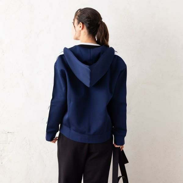 スポーティさあふれる配色ラインをあしらったパーカー。胸元にアナグラムロゴを施して、ブランドらしさを演出しました。メッシュ素材のライニングを使用しており、通気性も抜群。肌寒い日にさっと羽織れるのも嬉しいポイントです。