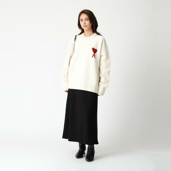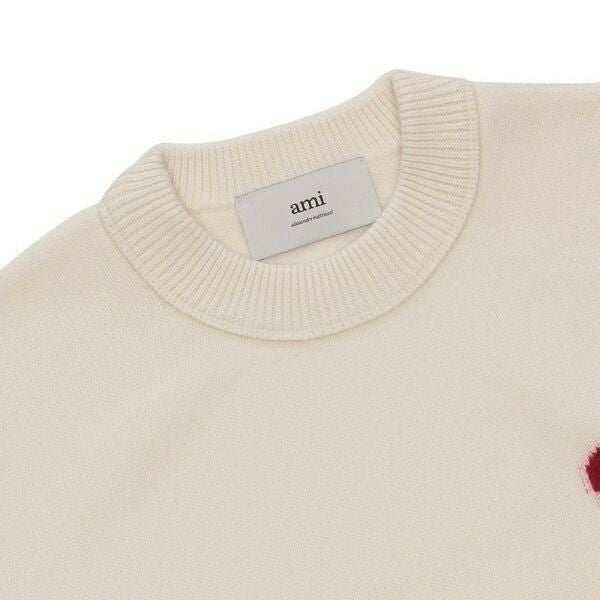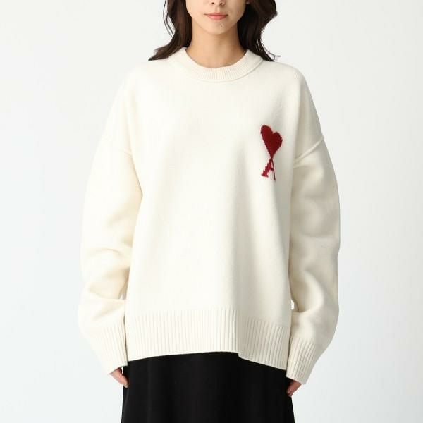 アミパリス ニット セーター アミドゥクール メリノウールフェルト セーター ホワイト レッド メンズ レディース ユニセックス AMI PARIS BFUKS006018 154 AMI DE COEUR OFF WHITE RED (ki25) |