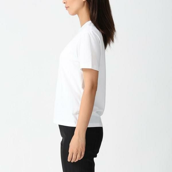 胸元に施されたロゴ刺しゅうがシンプルで洗練されたデザイン。程よくゆとりのあるボックスシルエットなので、リラックスした着心地です。薄手で風通しが良く、汗ばむ時期も涼しげに着こなせます。ベストやシャツを羽織るレイヤードにもぴったりな万能アイテムです。