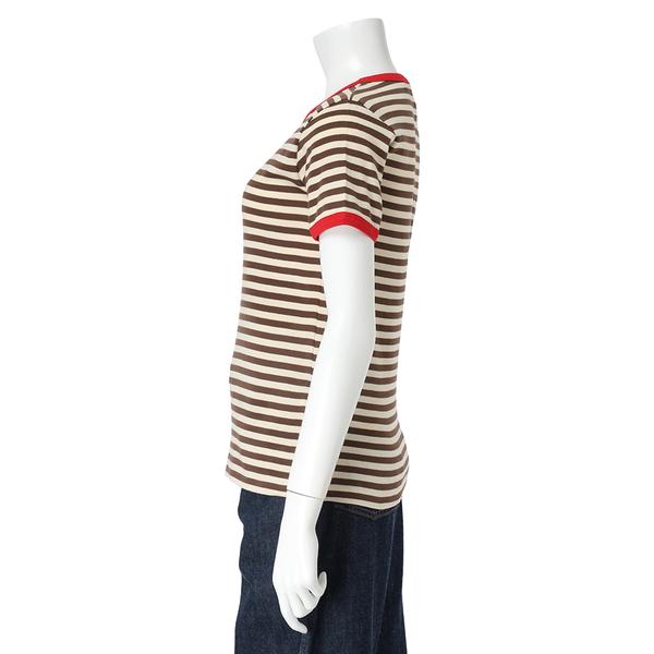 赤の配色パイピングがレトロな風合いを放つボーダー柄Tシャツ。ややゆとりのあるレギュラーフィットで、コンパクトなシルエットを演出します。胸元に施されたブランドロゴがワンポイントに。デニムやワイドパンツと合わせたラフなスタイリングもおすすめです。