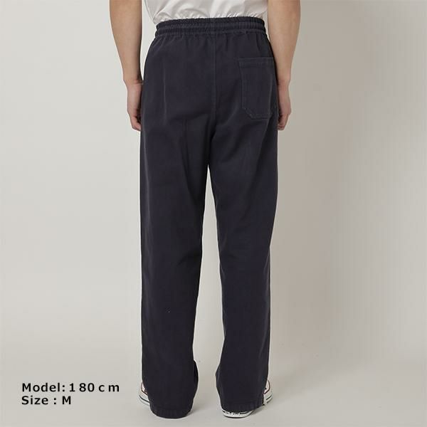 抜け感漂うゆったりとしたシルエットのパンツ。適度に厚みのある生地でカジュアルながら上品な印象を演出します。様々なトップスと難なくコーディネートできるシンプルなデザイン。ウエストはゴム仕様のため、ストレスフリーに着用できます。