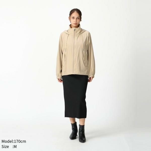 装飾を控えたミニマルなデザインで、洗練された印象を与える1着です。フードや裾部分にはドローコードを備えており、その日の気温やスタイルに合わせてシルエットのアレンジを楽しめます。袖元のフィット感も良く、アクティブなシーンや体温調節が難しい時期にもおすすめです。