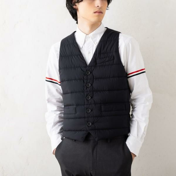 上質でマットな風合いに、キルティングデザインが印象的なダウンベストです。すっきりとしたVネックタイプで、襟付きのシャツやタートルネックと合わせたり、ジャケットのインナー使いにもぴったり。保温性に優れた軽量な素材で、着心地も抜群です。