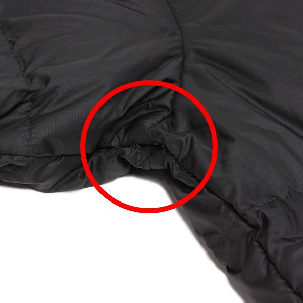 襟元に汚れがございます。また右脇に縫製不良箇所がございます。(写真 赤丸部分)