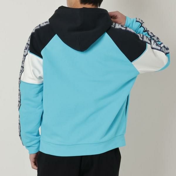 コントラストの効いたカラーリングや袖にあしらったFFモチーフがポイント。どの角度から見ても抜かりないデザインで、お手持ちのボトムを合わせるだけでサマになります。肩まわりを動かしやすいラグランスリーブ仕様です。