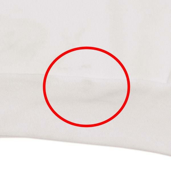 背面裾に黒い汚れ、正面ポケット下部に黄ばみがあります。(写真 赤丸部分)