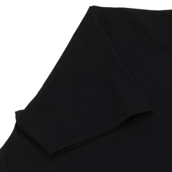裾元のブランドロゴがアクセントを添えるデザインです。シンプルなクルーネック仕様でボトムスを選ばず、幅広いコーディネートに活躍してくれるのも魅力的なポイント。ダークカラーでインナーの透けも気になりにくく、単品でさらりとご着用いただけます。