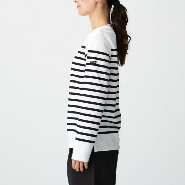 ブランドらしいボーダーデザインに目を奪われる長袖Tシャツです。スリーブには「SAINT JAMES」のロゴが刻まれたタグを配し、アクセントをプラスしました。柔らかな肌当たりで着心地も良く、デイリーユースにも好適です。