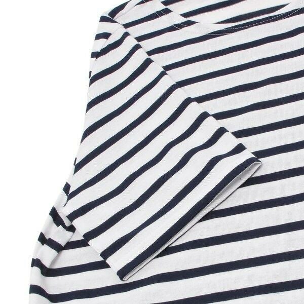 ブランドらしさ香る爽やかなボーダーデザインで、清潔感のある佇まいを叶える1着。さらりとした生地のため肌離れも良く、汗ばむ季節にも活躍してくれます。クルーネック仕様で汎用性も高く、ワードローブに備えておくと重宝するアイテムです。