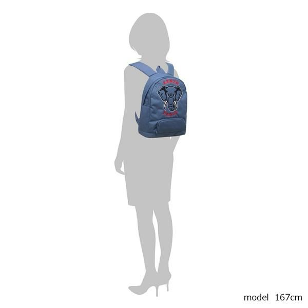 大きくあしらったエレファントとロゴが目を引くデザインです。さっと開くダブルファスナー仕様で中を見渡しやすく、ネームタグと内ポケット付きで、機能性も充実。パッド入りのショルダーストラップを備えており、快適な背負い心地を叶えます。
