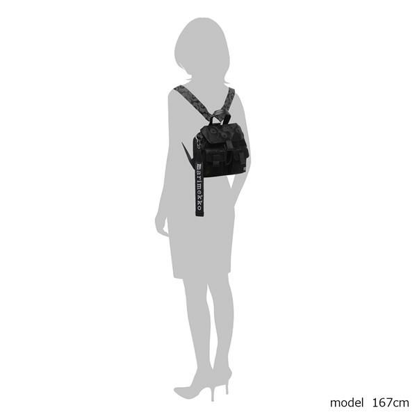 アイコニックなウニッコ柄を全体にあしらったリュック。ブランドロゴを配したチャームがアクセントになっています。コンパクトながら内外に収納ポケットを備えており、細かい荷物の整理がしやすい便利な設計です。