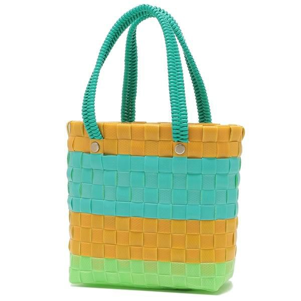 持ち歩くたびに気分が明るくなるカラフルなかごバッグ。中身を確認しやすいオープンタイプで、必要な荷物をスムーズに出し入れできます。手回り品がすっきり収まる程よいマチ幅を備えたコンパクトサイズです。