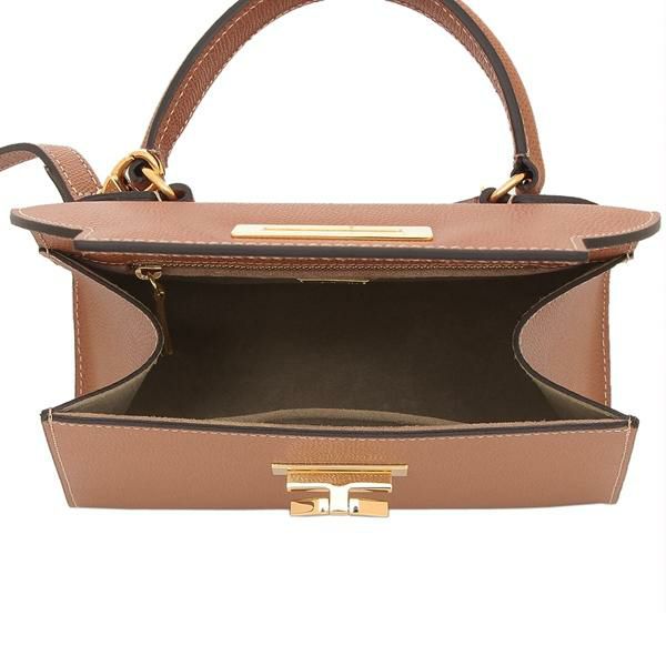 かっちりとした台形フォルムが大人の品格を高めます。フラップに施したメタルパーツがおしゃれなアクセントに。ミニ財布やスマートフォンなどの必需品が収まるコンパクトサイズです。取り外し可能なショルダーストラップが付いており、持ち方をアレンジできます。