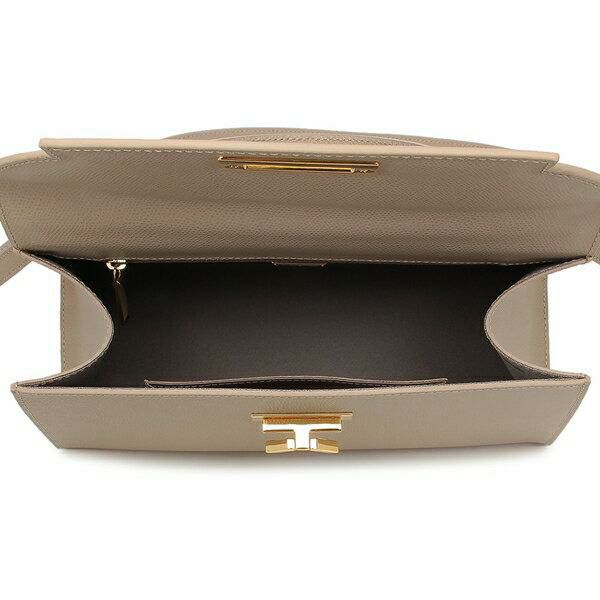 かっちりとした台形フォルムが特徴のハンドバッグ。フラップにあしらったメタルパーツがおしゃれなアクセントになっています。汚れを防ぐ底ビョウ付きも嬉しいポイント。デイリーからセレモニーシーンまで幅広く活躍します。