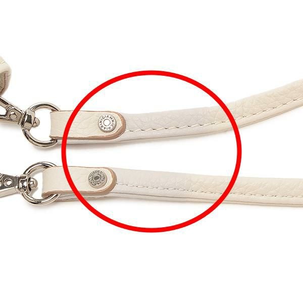 ショルダーの金具付近が両方薄いブルーに変色しています。(写真 赤丸部分)