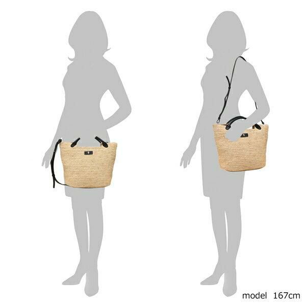 ナチュラルな素材を編み込んだシーンズムード漂うバッグ。間口が大きい逆台形フォルムで中を見渡しやすく、荷物をスムーズに出し入れできます。複数の内ポケットが付いており、小物を整理しやすいのも魅力。付属のショルダーストラップで肩掛けや斜め掛けも可能です。