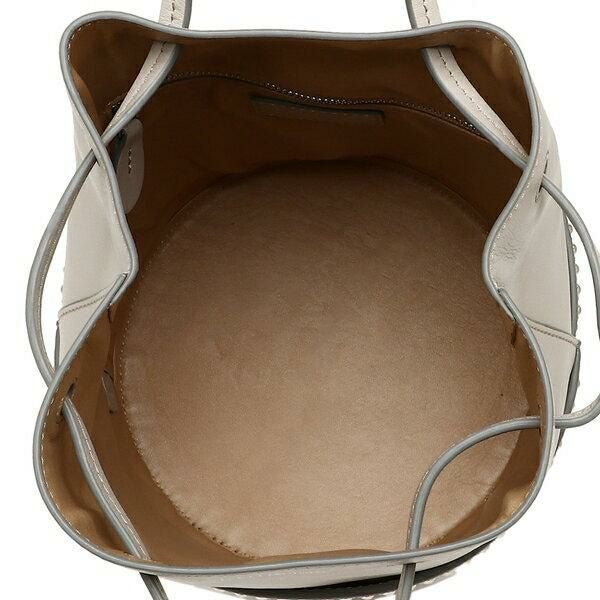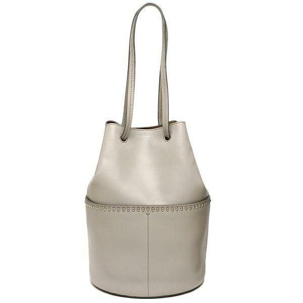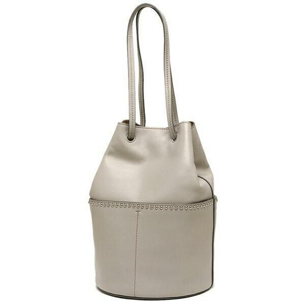安定感のある丸底でアイテムがしっかりと収まるハンドバッグ。ハンドルを持つだけで間口が締まる仕様のため、開け閉めの動作に手間取らないのが特長です。ボディには小粒のスタッズでアクセントをつけ、ブランドらしい個性を演出しています。