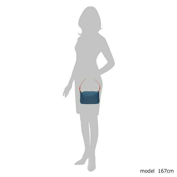 コーディネートのポイントになる前後バイカラーのデザイン。ファスナーにはロゴモチーフのチャームをあしらました。肩掛けでも持ち運びしやすく、必需品が入るコンパクトなサイズ感でちょっとしたお出かけにも活躍します。