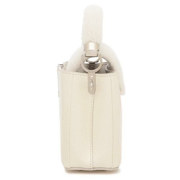 上品な色を基調に、ブランドロゴをカッティングで表現した技巧的なデザイン。ふわふわとしたボアをハンドルにあしらい、シーズンムードも盛り上げてくれそうです。メインコンパートメントには仕切りを備えて整理もしやすく、機能面にもしっかりとフォーカスしています。