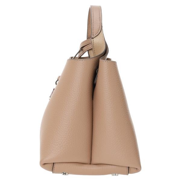シボ感のある柔らかなレザー素材を使用したハンドバッグ。内側は2つのコンパートメントに分かれ、ファスナー付き収納も備えています。ブランドイニシャルをモチーフにしたキーホルダー付き。日常からタウンユースまで幅広く活躍するアイテムです。