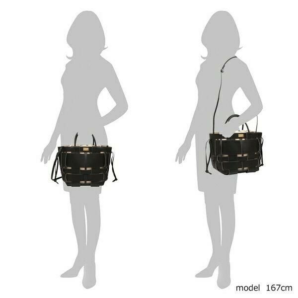 | サイズ | 約横上部32cm/下部21cm×縦22cm×幅18.5cm 持ち手の長さ:約29cm(持ち手の幅:約1cm)、ショルダーの長さ:約84-143cm(ショルダーの幅:約1cm) 重量:約750g |