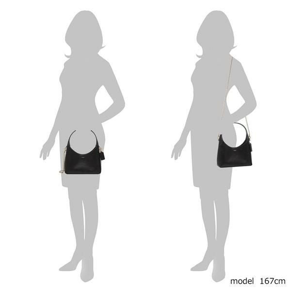 大人の余裕を感じるシックな色合いに合わせた、メタルチェーンがアクセントです。表面に自然な凹凸がある、柔らかい風合いのグレインレザーを採用。三日月を思わせる柔らかな曲線が特徴で、装いにさりげないアクセントを添えます。