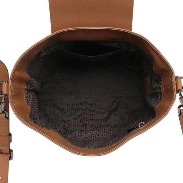 幅広い世代の方が使用できるシンプルなデザインに、フラップ部分のロゴでアクセントをプラス。楕円形のマチや複数のポケットが付いている、実用性にも優れた一品です。カジュアルからエレガントまで、様々なコーディネートに取り入れられます。