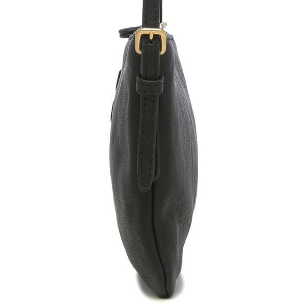 コロンとしたフォルムにブランドロゴが映える、上品で愛らしいデザイン。間口は開閉しやすいファスナー仕様で、中身の取り出しもスムーズに行えます。ショルダーストラップはベルトタイプで長さの調節が簡単にでき、日常使いに取り入れやすい一品です。