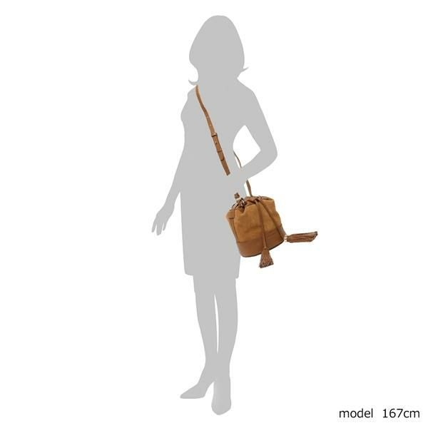 異素材使いやタッセルで遊び心を加えたデザイン。開閉はドローストリングタイプで大きく開き、荷物をスムーズに出し入れ可能です。装いに合わせて、長さ調節できるショルダーストラップ付きも嬉しいポイントです。