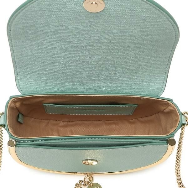 爽やかなペールトーンのカラーリングに煌めくメタルパーツが美しく映えるデザイン。フロントにはさりげなくブランドロゴをあしらった細部まで抜かりない一品です。複数のポケット付きで使い勝手が良く、すっきりとしたフォルムながら適度にマチを備えています。