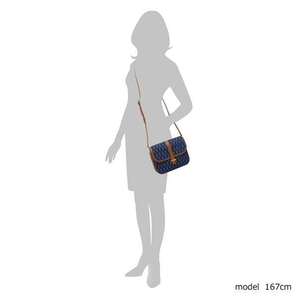 どこかレトロな雰囲気を感じさせるショルダーバッグ。全体にあしらったモノグラム柄がポイントになっています。コンパクトながら仕切りポケット付きで、荷物をすっきりと収納できます。