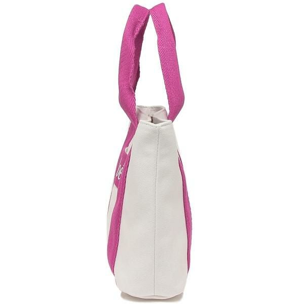 気分を盛り上げるキュートな配色使いがポイント。フロントにロゴをあしらい、アクセントを加えました。開閉はマグネットボタン式で、荷物をスムーズに出し入れ可能。その日の気分や装いによって持ち方を選べる2WAY仕様です。