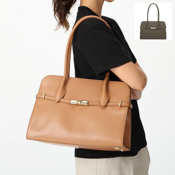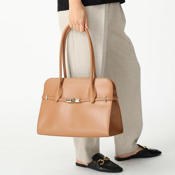 丸みを帯びた柔らかなフォルムと上品な色使いが魅力のトートバッグです。シンプルなデザインで使いやすく、飽きずに長くご愛用いただけます。底びょう付きで地面に置いたときに汚れにくいのもうれしいところ。内部には複数のポケットを備えており、中身の整理整頓に役立ちます。