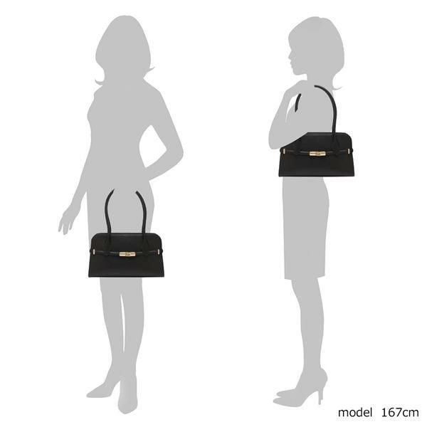 ぐるりとボディを囲むベルトのディテールが目を引くデザイン。随所にはメタルカラーのパーツをあしらい、アクセントを効かせました。間口はファスナー付きで中身の飛び出しも防止。底ビョウ付きで自立してくれるので、外出先でも荷物の確認がしやすい仕様です。