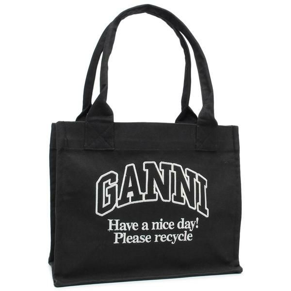 ガニー トートバッグ ブラック レディース GANNI A6647 252 LARGE EASY SHOPPER CONTRASTED LOGO BLACK (ke14) |