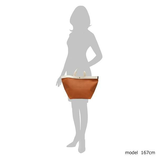 荷物を出し入れしやすい逆台形フォルムのトートバッグ。間口はスナップボタン式で、中身見えを防止します。広いマチ幅に加え、内ポケットをセットした実用性に優れたアイテム。装いを選ばず持ち歩けるシンプルなデザインです。