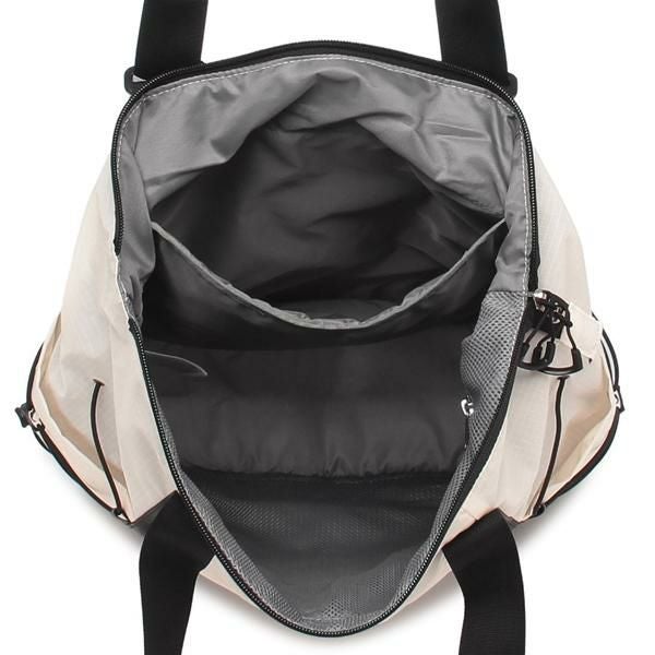 ワンポイントロゴでコーディネートを選ばない、シンプルなデザインがポイント。リュックにもなる肩紐付きで2WAYの使い方を楽しめます。外ポケットや間口にはファスナーを完備しており、中身が落下するのを防止。デイリーのあらゆるシチュエーションにマッチするアイテムです。