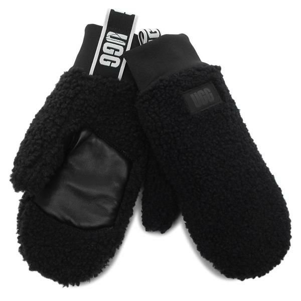 商品名 アグ 手袋 フラッフ ミトン ウィズロゴテープ ブラック レディース UGG 101099 BLK W UGGFLUFF MITTEN WITH LOGO TAPE BLACK (ka17)