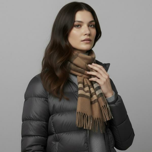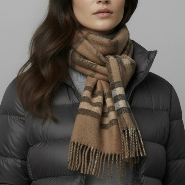 クラシカルなチェック柄で、どんなスタイリングにも合わせやすい1枚。ソフトな肌触りの素材を使用しており、首元を優しく包みこみます。両端にはフリンジを施すことで、さりげないアクセントをプラス。性別を問わず使えるユニセックスなデザインなので、ギフトにもおすすめです。