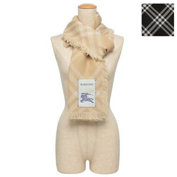 商品名バーバリー ストール スカーフ ワイドチェック フリンジ メンズ レディース ユニセックス BURBERRY WIDE CHECK WOOL SILK SCARF
