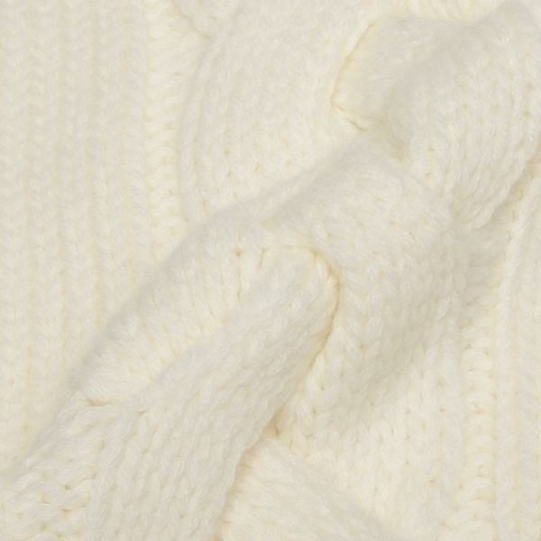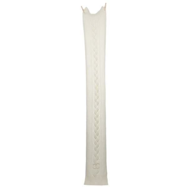季節感のあるケーブル編みに取り入れたブランドロゴがポイント。上品なワンカラーでスタイリングにアクセントを添えます。さまざまなアレンジを楽しめる長めの設計。肌当たりの良いカシミヤ素材を使用しており、つけ心地も快適です。
