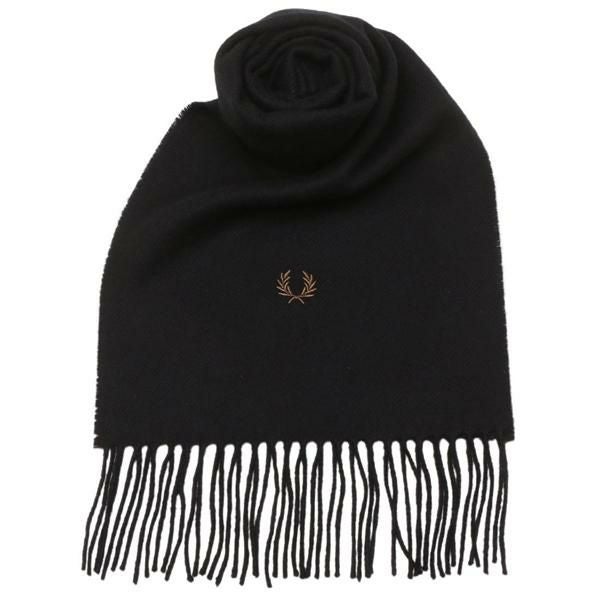 商品名 フレッドペリー マフラー ブラック メンズ レディース ユニセックス FRED PERRY C4126 102 LAMBSWOOL SCARF BLACK フリンジ ローレルリースロゴ (kk14)