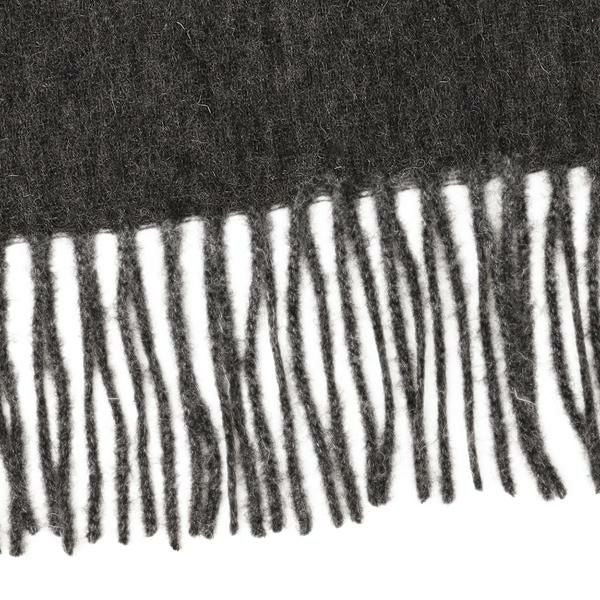 ワンポイントのゼブラ刺繍をあしらったマフラー。シンプルなデザインながら、フレンジが軽やかな雰囲気を演出します。肌ざわりの良いなめらかな素材を使用しており、保温性も抜群。大切な方へのギフトとしても好適です。