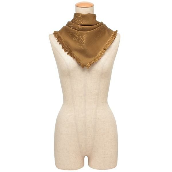 なめらかで上質な風合いが大人の魅力あふれる一品。全体にロゴをあしらい、ブランドらしさをアピールしました。さまざまな巻き方を楽しめる大判サイズも嬉しいポイントです。