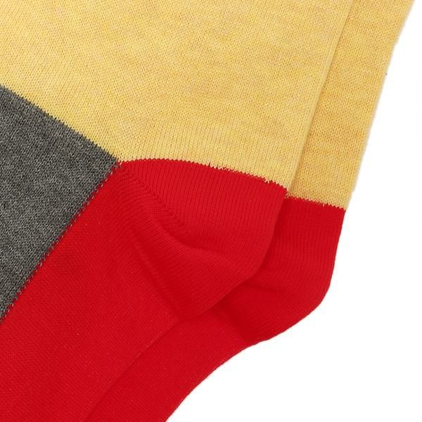 複数のカラーを組み合わせた、遊び心あふれるデザインが魅力的です。コーディネートのアクセントにぴったりな存在感のある1足。なめらかなハイゲージ編みで、カジュアルながらきれいめにも馴染む上品な雰囲気を演出します。