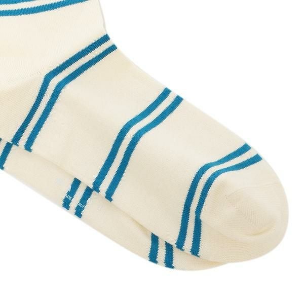 2パターンのボーダー柄を取り入れ、メリハリのあるおしゃれデザインに仕上げました。ハイゲージ編みならではのなめらかな肌触りも魅力。シンプルなパンプスを合わせてソックスを引き立てたスタイリングもおすすめです。